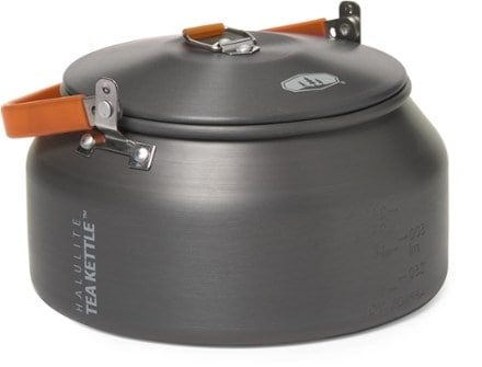 The handy-size GSI Halulite 1-quart tea kettle provides the efficient heat conductivity of hard-anodized alloy to save you time and fuel when boiling water.