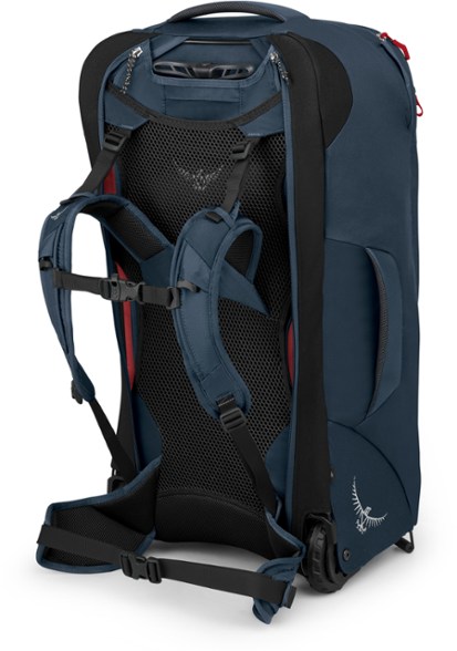 - Wheel the pack when the path allows or quickly deploy the stowaway harness and hipbelt for a comfortable backpack-style carry when conditions demand