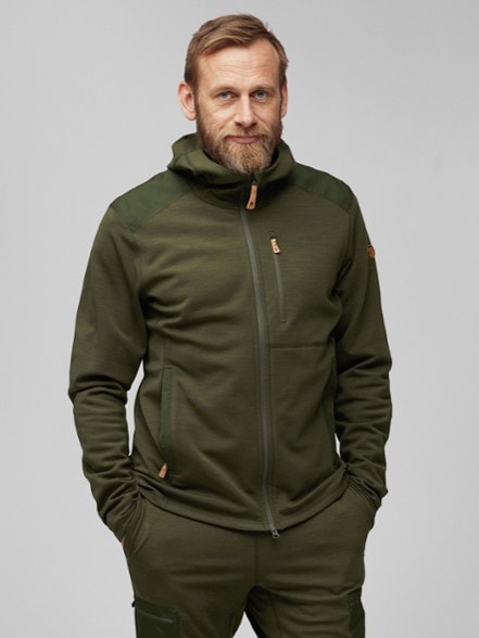 Perfect as an insulating and moisture-wicking mid layer for year-round activities, the men's Fjallraven Keb Fleece hoodie takes the chill out of a cool day with its polyester/wool blend.