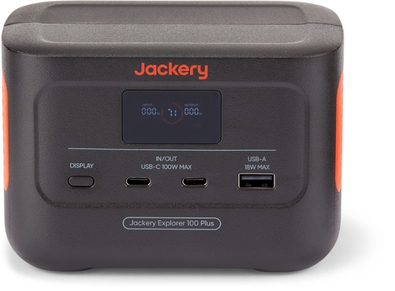 A portable power station with a 99 Wh capacity, the Jackery Explorer 100 Plus portable power station can charge up to 3 devices simultaneously with 100W Dual PD outputs and a USB-A output.