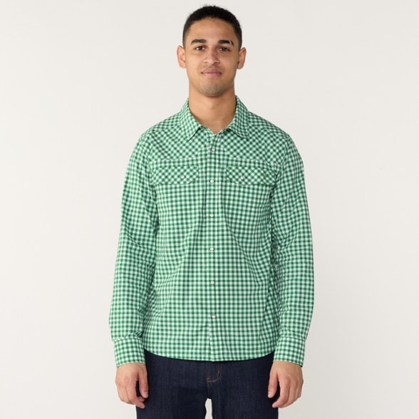 A staple of any active mountain wardrobe, the men's Stio Eddy long-sleeve shirt strikes a premium balance of Western-inspired style and technical performance from the ridgeline to the riverbank.