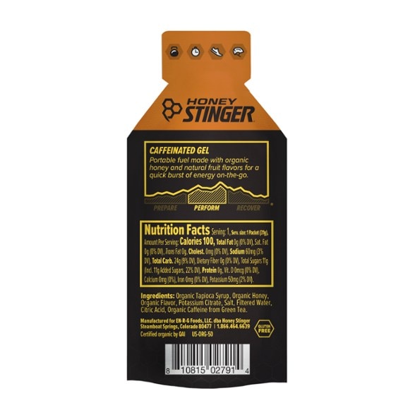 For a quick burst of energy on the go, enjoy a Honey Stinger Salted Caramel Latte energy gel. This portable, caffeinated fuel is made with organic honey and natural flavors.