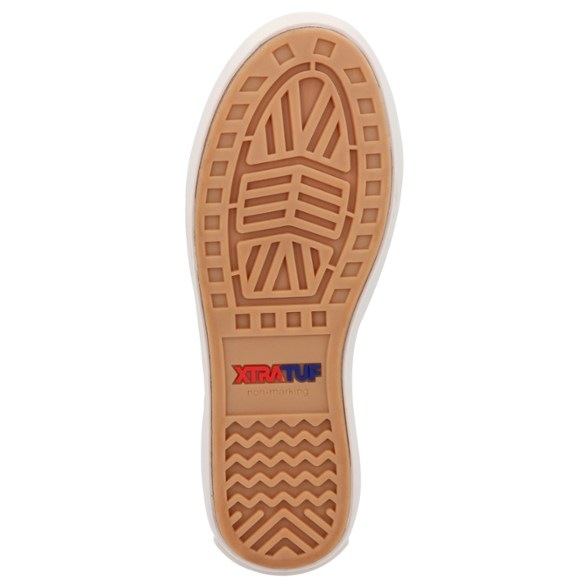 - Slip-resistant, nonmarking chevron rubber outsoles provide sure footing on slick surfaces