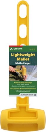 i like this mallet. it's really light, it does the job and packs a surprising heft despite its weight, and the stake pullers on the handle are a life saver. this is definitely a product made of plastic though. hammering away with it will probably damage the mallet head and plastic will chip or flake off... not exactly great if you're trying not to leave a trace. it only took me a single trip to start seeing this, so a bit more durability would have been nice to be honest. but to some degree this probably comes with the territory of a lightweight plastic item. you can't have it all. just something to be aware of!