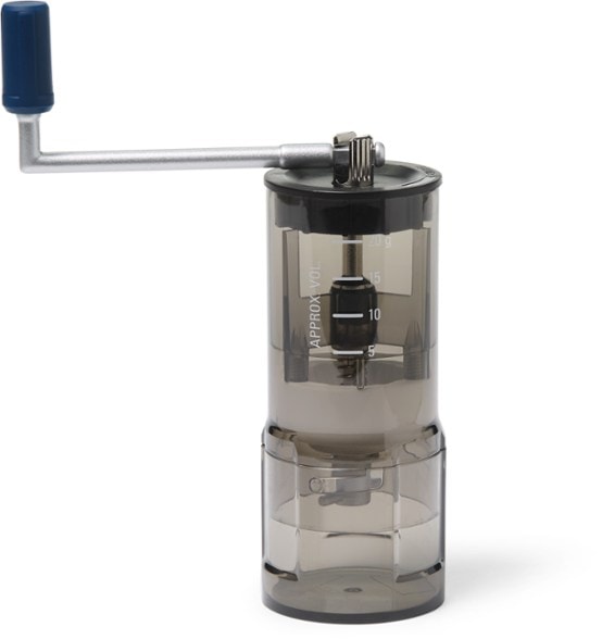 We’re into immersion-style coffee made with a French press and Aeropress, so this GSI Outdoors JavaGrind Coffee is a welcome and essential backcountry companion. It’s lightweight (ours weighs 7.4 ounces with trace grounds still inside, lighter than the 7.8 ounces shown in this product listing) and features a clever locking grounds container that eliminated our fears of pre-coffee camp spills. The reversible aluminum handle tends to slip off when stored in a backpack, so we rely on a rubber band or hair band to keep from getting lost in our packs. Coffee beans vary in mass depending on how long beans are roasted, so treat the volume indicator printed on the side of the grinder as a rough guideline—I wouldn’t rely on it for any pour over measurements. Like many hand grinders, you can adjust the fineness of your grind by twisting a small rod attached to the base of the shaft above the grounds container. The simple adjustment narrows or widens the gap between the ceramic burrs where beans shatter and eventually fall into the grounds container. Unlike more expensive (and heavier) hand coffee grinders, there isn’t a significant adjustment range for fine-tuning the grind size, but this is a grinder ideally suited for the backcountry, not barista competitions. If GSI figures out a way to keep the handle stored securely to their future grinder incarnations, this will be a perfect and highly cost-effective choice for making quality coffee anywhere.