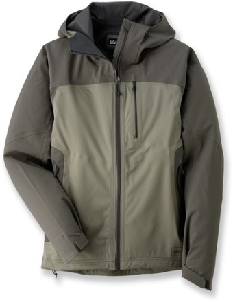 - Seam-taped, breathable 3-layer REI Element® laminate blocks rain and winds to 60 mph; shoulders and hood are reinforced to resist abrasion and shed weather