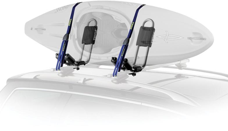 Thule Hull-a-Port kayak carrier has J-shape cradles for easy loading and transporting.