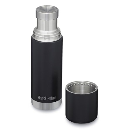 Keep your drinks hot or cold in this plastic-free, insulated Klean Kanteen vacuum bottle. It holds 16 fl. oz. and has a 360° pour-through lid. The included screw-on cup holds 7 fl. oz.