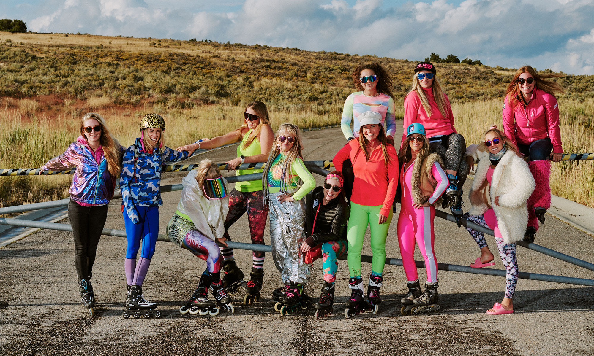 It’s a chilly September evening in Park City, Utah, though you wouldn’t know it from the bare arms and midriffs the women are showing in the ice arena parking lot. The PC Bladies, as they call themselves, are gathering for their weekly blade through town, looking like they put the ’80s in a lidless blender and hit puree.
