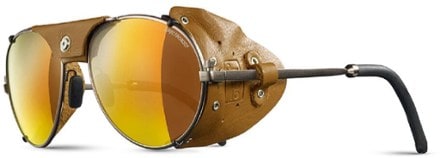 Nostalgic for a classic mountaineering frame with leather side shields? The Julbo Cham sunglasses offer the alchemy of shiny metal, soft leather, rivets and high-performance mirror lenses.
