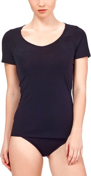 [This review was collected as part of a promotion.] I love the neckline and figure hugging fit of this tee. I wear it alone but it would also work great as an undershirt during cooler months. The feel isn't as silky soft as some of my other Icebreaker clothing but I don't find it itchy at all.