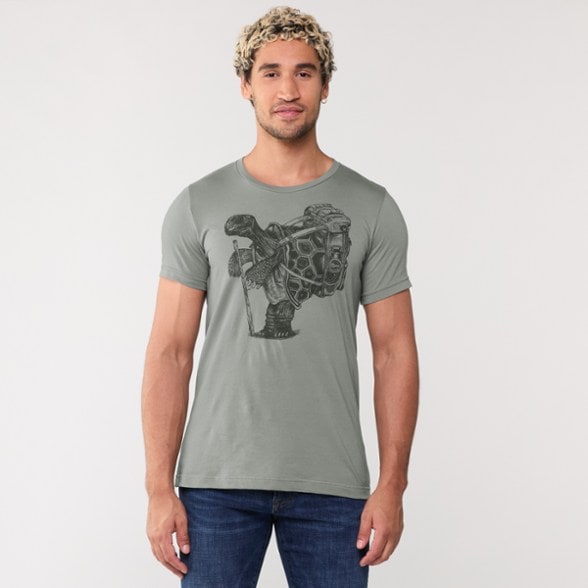 Made with soft cotton, the men's Slow Loris Hiking Tortoise T-shirt is great for casual, everyday adventures, whether slow and steady is your favorite speed or you just like tortoises.