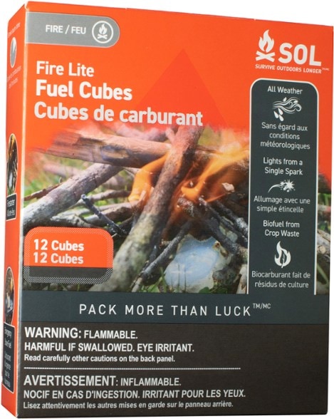 Powering your camp stove or starting a campfire has never been easier. The SOL Fire Lite Fuel Cubes light with a single spark, even when wet, and burn for 8 mins. for quick cooking or fire lighting.