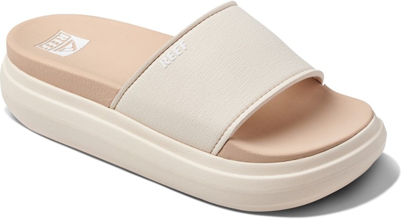 Supercushy and water-friendly, the women's Reef Cushion Bondi Bay slides pair over-the-top comfort with high-rebound outsoles and footbeds. Their rounded sidewalls and extra height go with anything.