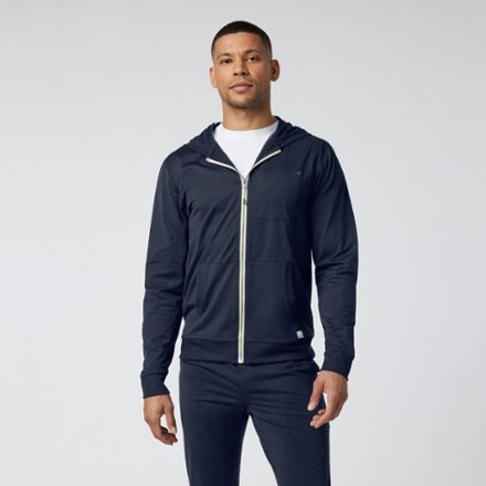 Stay warm on chilly workouts with this Vuori hoodie. The stretchy knit fabric has a soft brushed interior to keep you cozy. The zip-up design makes it easy to toss on before or after a hard session.