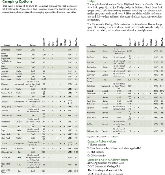 - Helpful trail profiles show the distance between shelters, camping areas and trail access points