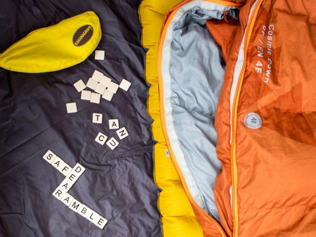 For those who want to get their intellect involved, word games are excellent ways to pass the time while stuck inside a tent during a rainstorm. Bananagrams, cleverly packaged in the shape and size of a banana, is similar to Scrabble and is a favorite for backpackers tight on space.