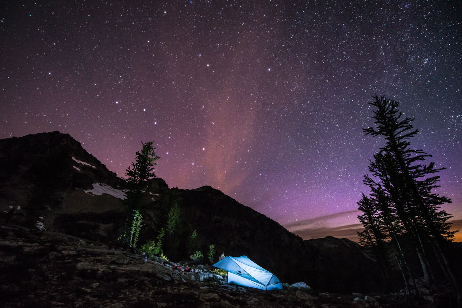 The report hypothesized that people as far south as Washington state might experience impressive Northern Lights. That was grounds enough for me to call it a day, pack up my overnight gear and head to the North Cascades in hopes of clear skies and dramatic night photography.