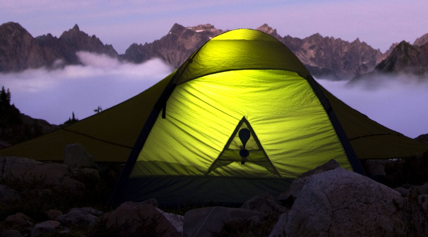 Somewhere between sunset and sunrise, the light is just right for a dreamy campsite snap.