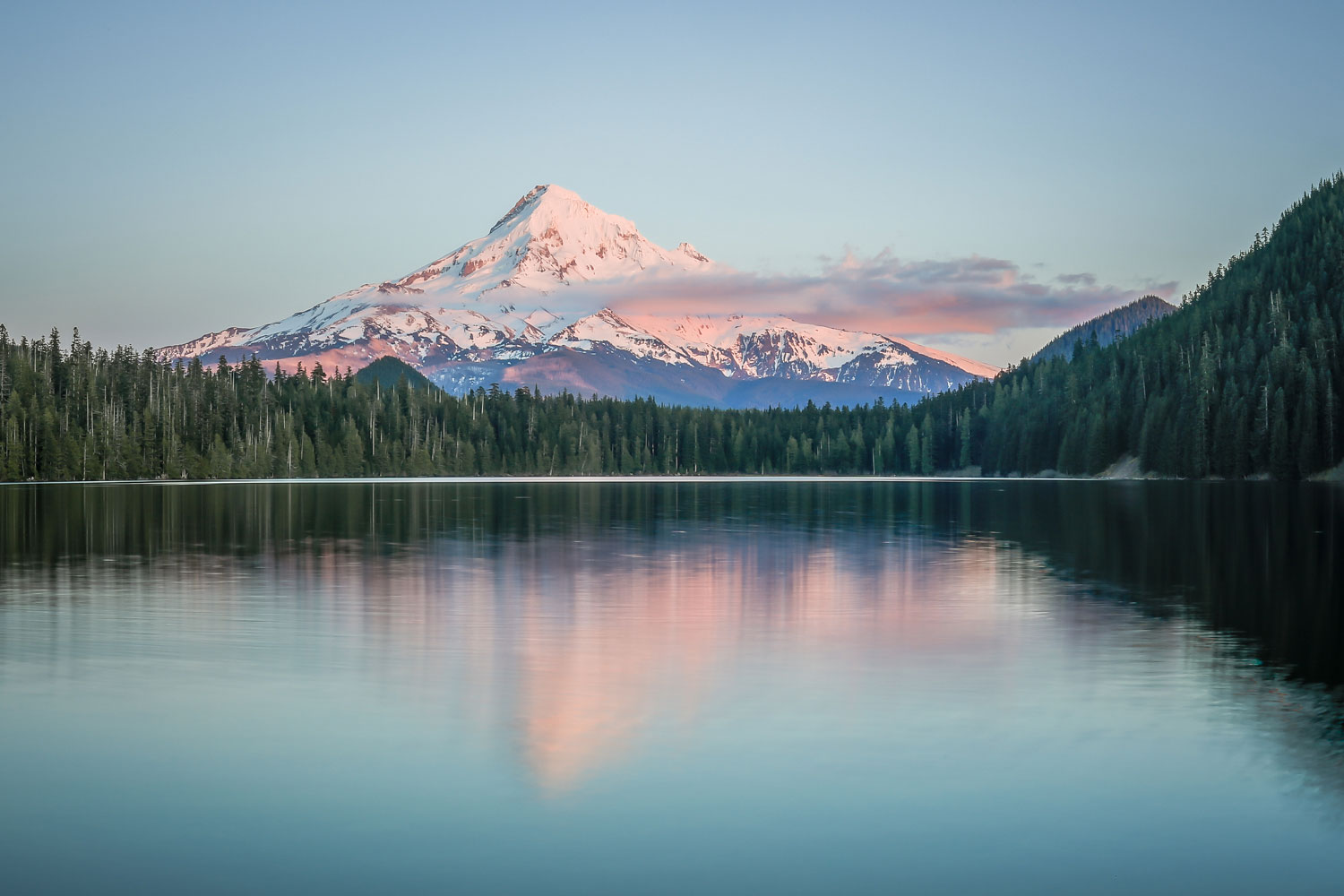 Hood’s most popular day hike is the trail to Mirror Lake, a 2.9-mile round-trip walk to the aptly-named lake, which on still days reflects an image of snowcapped Hood in its waters.