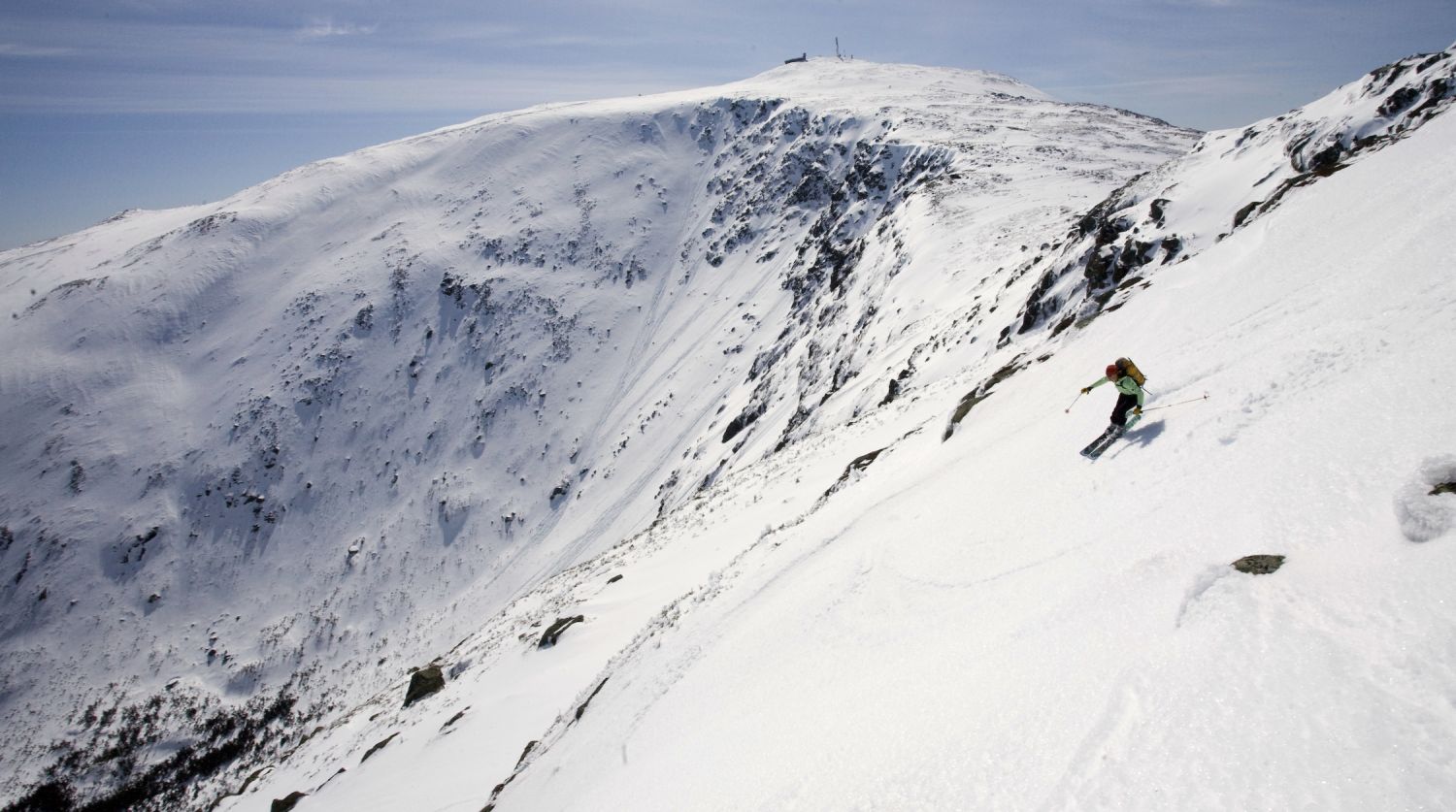 Tuckerman Ravine, in addition to being the most popular summertime hiking route to the summit of Mount Washington, is also the centerpiece of East Coast backcountry skiing. Skiing Tucks is a springtime tradition; after all of the area ski resorts have closed, many a skier has gotten his or her first off-piste turns in the steep snow there. Every weekend in late April and early May, skiers hike their gear up the trail to the huts at the base of the ravine alongside hikers who just come to watch the skiing (and sometimes party).