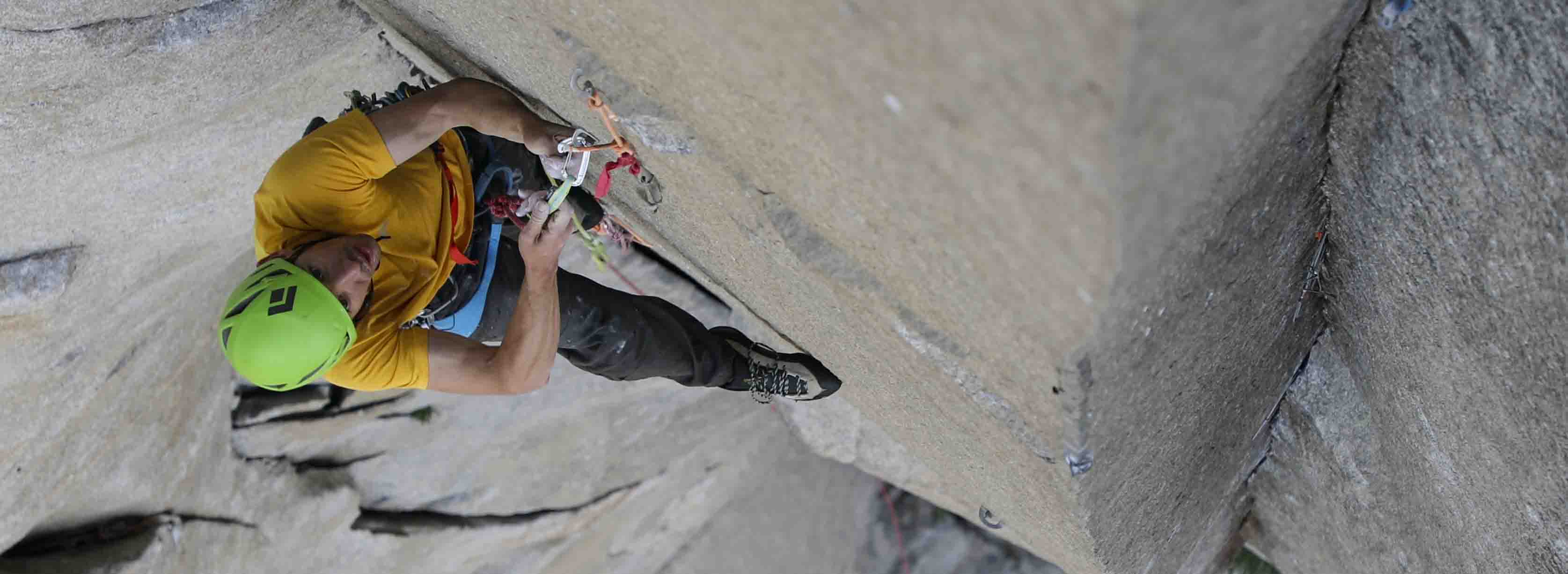 Tommy Caldwell climbing above Texas Flake about halfway up The Nose on El Capitan. Photo: REEL ROCK Film Tour, Austin Siadak