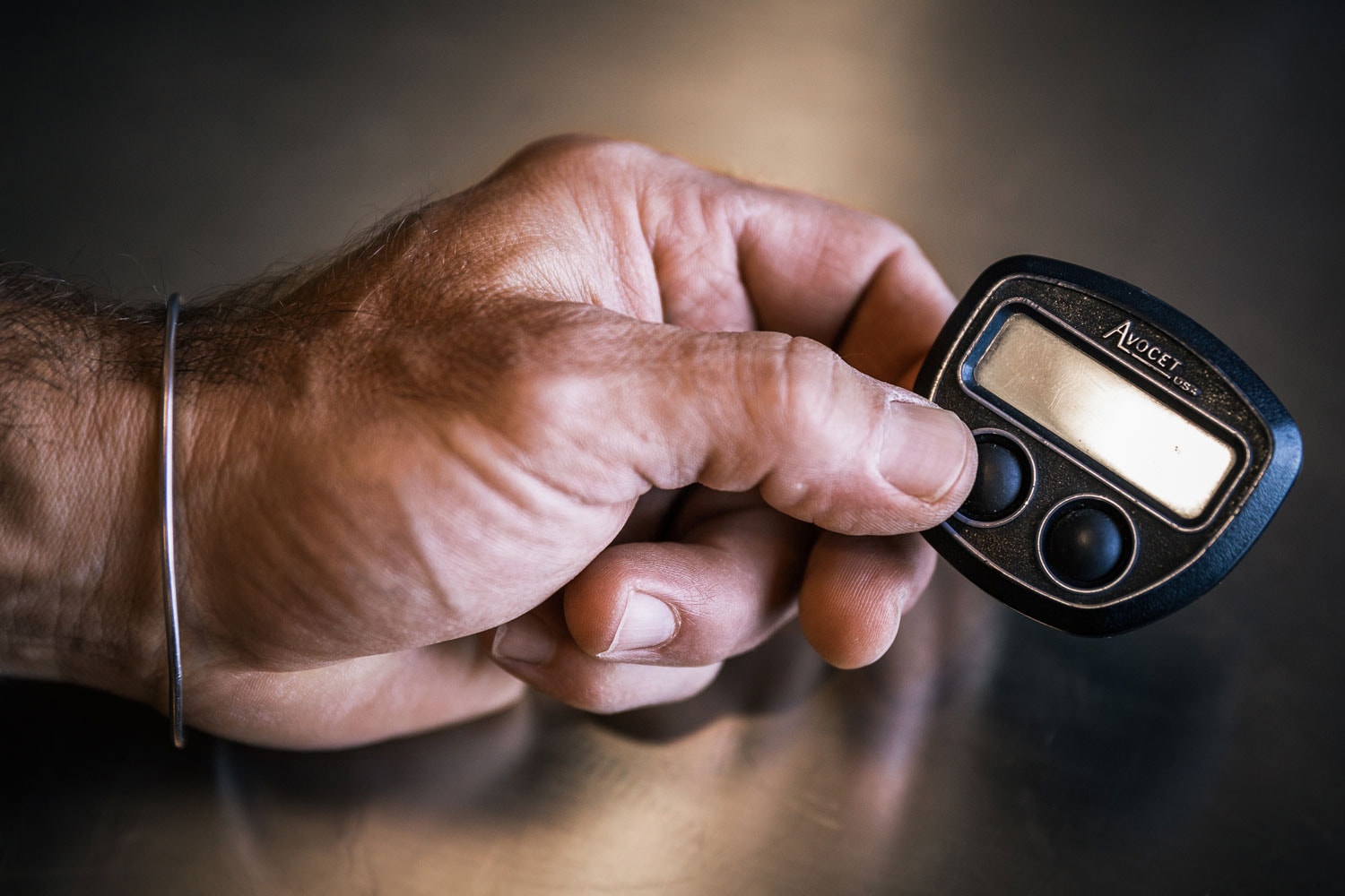 Gluckman’s original Avocett bike computer that he used to track miles in the mid 1980s. Photo by James Harnois.