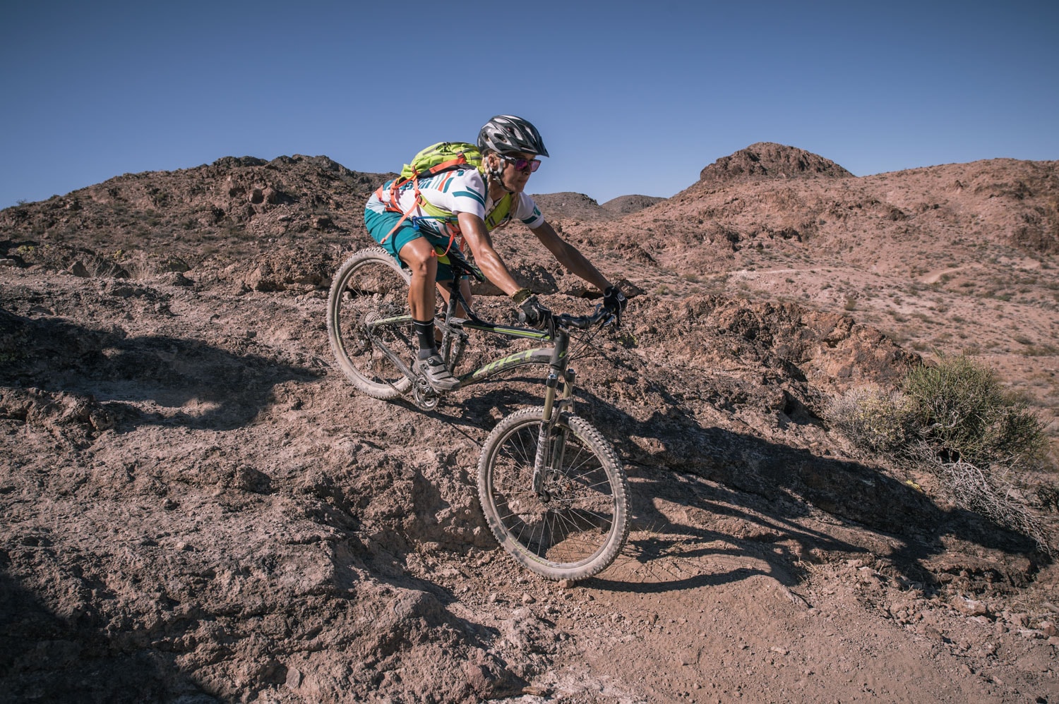 “Firm up compression so you don’t dive and bottom out the fork,” says Riffle. “But not so much that you get thrown off your bike. And set up suspension equally. You don’t want a lot of sag in back and none in front,” says Riffle. “If your front is stiff, run your rear stiff too. If you like supple and soft—set both shocks that way.”