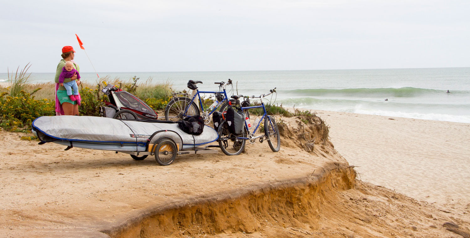 Then again, it wasn’t until 2011, when we finally scored a bike trailer capable of easily and reliably carrying a solid quiver of surfboards, including a larger SUP board, that bicycle-powered surfing became practical for us. Now, especially when we are based on one of New England’s many offshore islands, it’s our preferred way to roll.