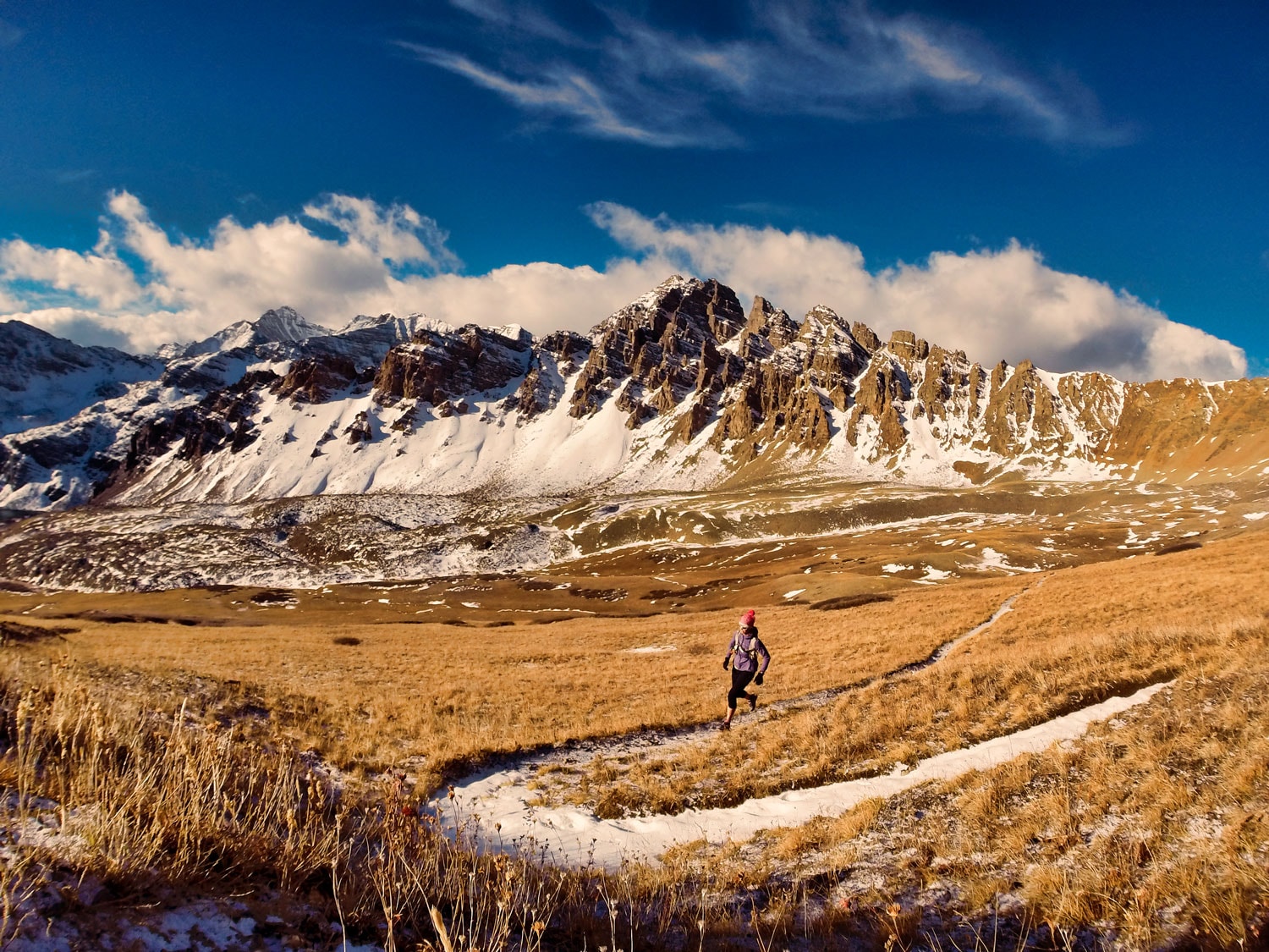 And then one night the winds howl through the forest, a death rattle in the trees, and I cannot sleep. I know the first valley snows are on their way and my trails will soon be covered and gone for the winter. In the morning I run up high, as far as I can, breaking trail with fresh snow squeaking underfoot. The mountains prepare to sleep and I say goodbye to my trails until spring.