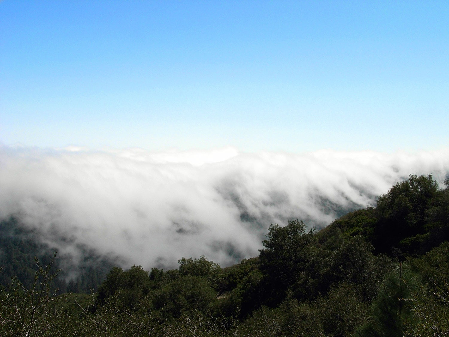 Further east, more adventurous hikers can beat the Gloom with an early morning drive through Mount Baldy Village in Icehouse Canyon. One of the most popular trails in the region, it stretches four miles from the trailhead at just under 5,000 ft. to Icehouse Saddle at 7,555 ft., along a gorgeous year-round creek shaded by pines. At the Saddle is a major trail junction. For the best views of the clouded cities below, head to the popular cliff-summit of Cucamonga Peak (8,859 ft.). Or, take the longer route along a picturesque and lightly traveled ridge between Ontario (8,693 ft.) and Bighorn (8,441 ft.) peaks to watch the Gloom break on the south-facing mountain slopes. Keep your eyes peeled for bighorn sheep and enjoy knowing that most of the people below the clouds are probably still in bed.