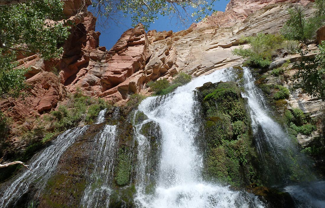But beware. The canyon’s steep walls mean reaching these often hidden oases is demanding, and summer brings temperatures of over 100 degrees at the canyon bottom. Winter snows can also close the North Rim, so plan these hikes for May and early June or September through October. No matter the season, accessing these eight cascades requires traveling through 1.8 billion years of geological time and witnessing the life source of this place, the untamed water that spills over—and sometimes through—the canyon walls from tributary creeks, underground rivers, unknown springs and secluded caves.