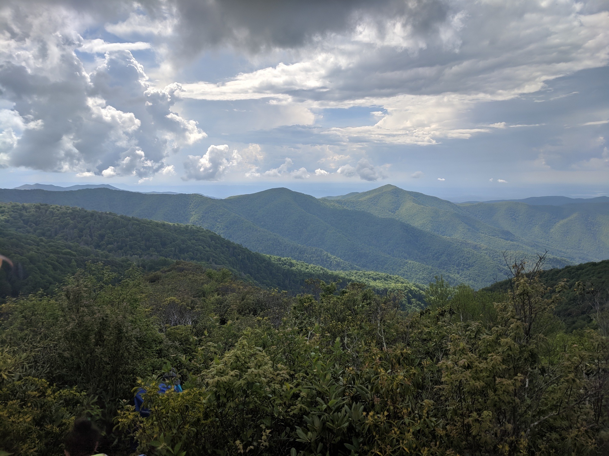 From the trailhead, head east on the Fodderstack Horse Trail which for the first 1.7 miles is a forest road. At the first junction, there are three options; veer right to continue on the Bob Bald Connector which ascends the ridgeline through dense trees. As you reach the end of the trail, the forest begins to thin a bit, and you’ll take a right onto Stratton Bald Trail which meanders through deciduous woods dotted with rhododendron. Around 3.5 miles into the hike, take the short side use-trail to the grassy top of Stratton Bald and enjoy the views. Continue on before taking a left onto Haoe Lead Trail which continues to follow the ridgeline. There is some great camping along this trail at the junction with Naked Ground Trail with access to water just a short way down the Slickrock Creek Trail. Stay high on the ridge taking a left onto Hangover Lead Trail, but stay straight onto Hangover Alt Trail to reach The Hangover. At 6 miles into the hike, this is a perfect spot to stop and rest while enjoying the views.