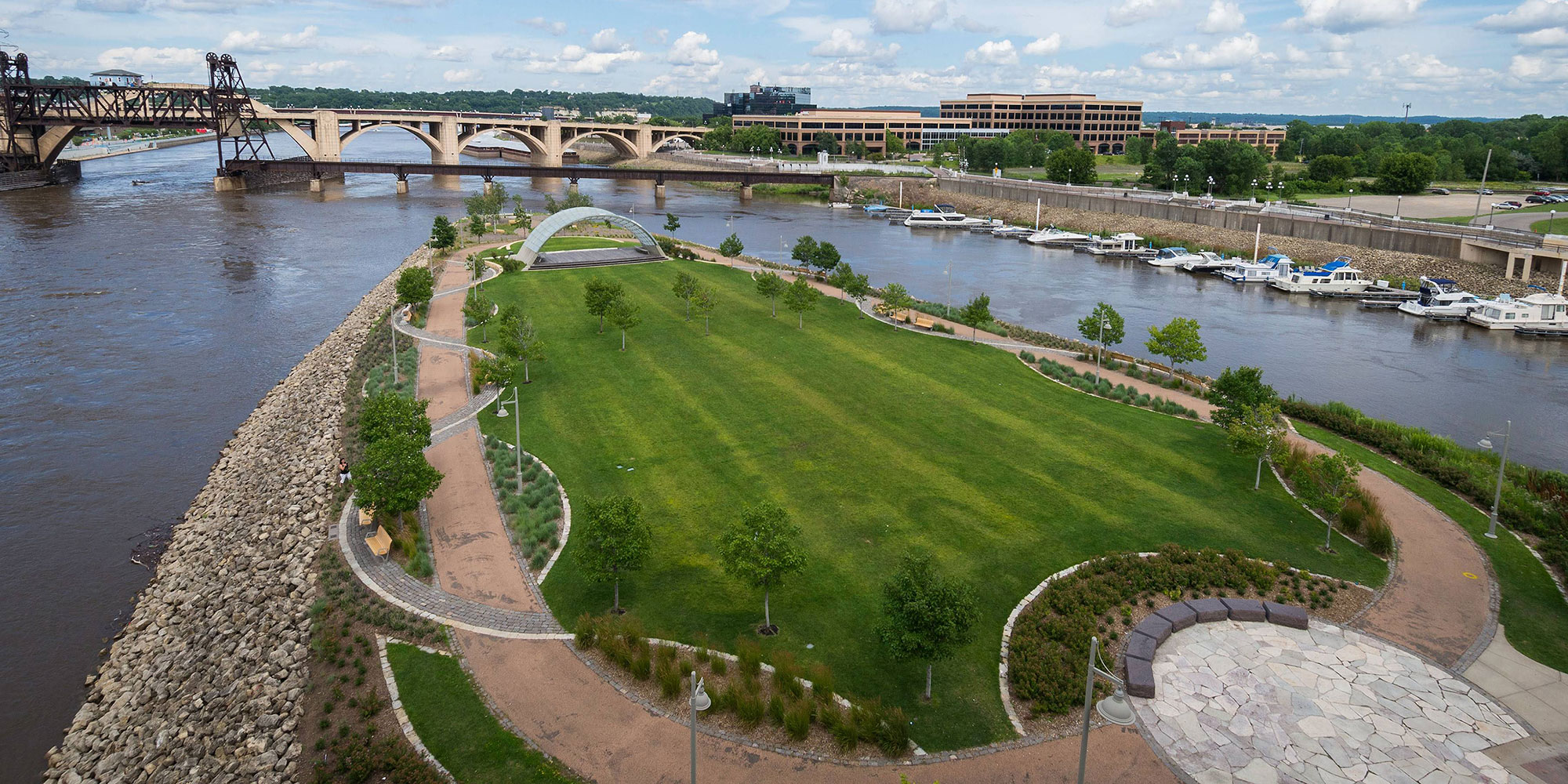 St. Paul Parks Director Mike Hahm says St. Paul benefited from decades-old urban planning decisions that prioritized green space, but that parks have continued to be a focus as the city grows and becomes more dense. Working with the Trust for Public Land, St. Paul officials launched a strategic initiative called “Greening the Green Line” to create new outdoor community spaces at the city’s light rail stations, where people already were congregating.