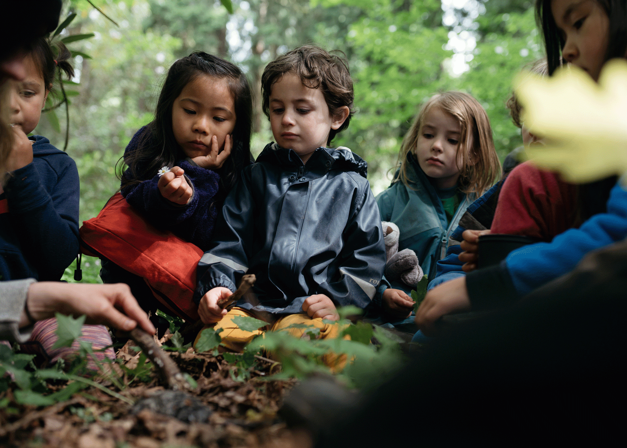 On a rainy January day in Seattle, you’ll find most preschoolers tucked away in a heated classroom, dabbing at finger paints or molding clay. Not Rose, a 4-year-old who attends Fiddleheads Forest School. There, with temperatures hovering around 40 degrees Fahrenheit, Rose and her 13 classmates are huddled together under a tarp hung among trees, learning to make cedar tea.