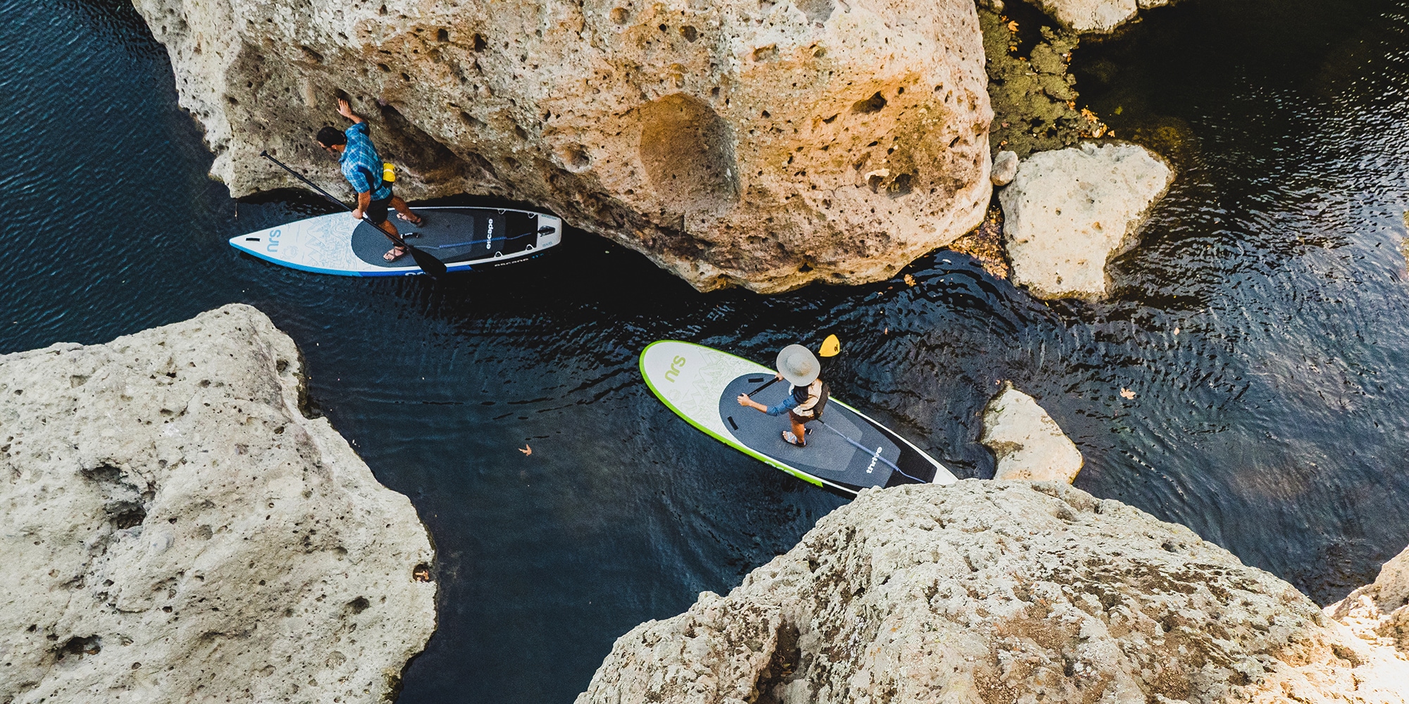 Particularly in places like Colorado with lots of rivers and no coastline, river-specific SUP equipment is growing in popularity. Such boards, like the Hala Radito inflatable, tend to have a swallowtail design for extra stability (great in tighter spaces) and a retractable center fin (great in shallows). River boards are also generally shorter, typically 9 to 10 feet, for increased maneuverability, since reading currents and reacting quickly to obstacles are critical to a successful river paddle.