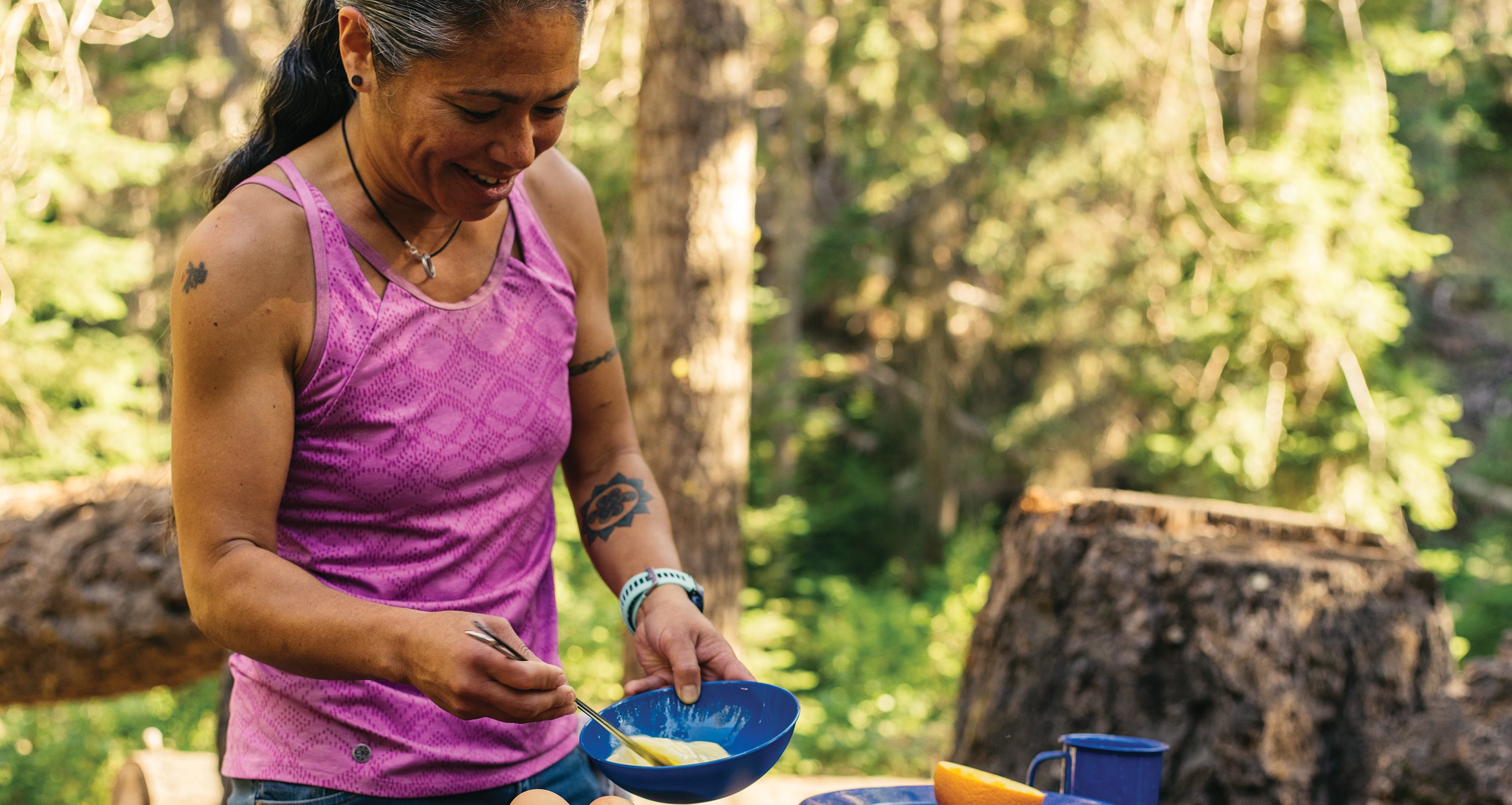 Maria Hines is an award-winning chef and an avid rock climber and adventurer. In 2005 Maria was named one of Food & Wine Magazine’s 10 Best New Chefs, and she’s competed on TV shows like Top Chef Masters and Iron Chef America. But when Maria is on the trail for an early morning hike or climb, she doesn’t have time to bring a five course meal. Instead, she’s figured out a way to bring healthy, convenient, and delicious foods with her on her outdoor adventures. Maria shares recipes in her cookbook, Peak Nutrition, and she’s also the star of REI’s Youtube Series, Cook Out with Chef Maria Hines.