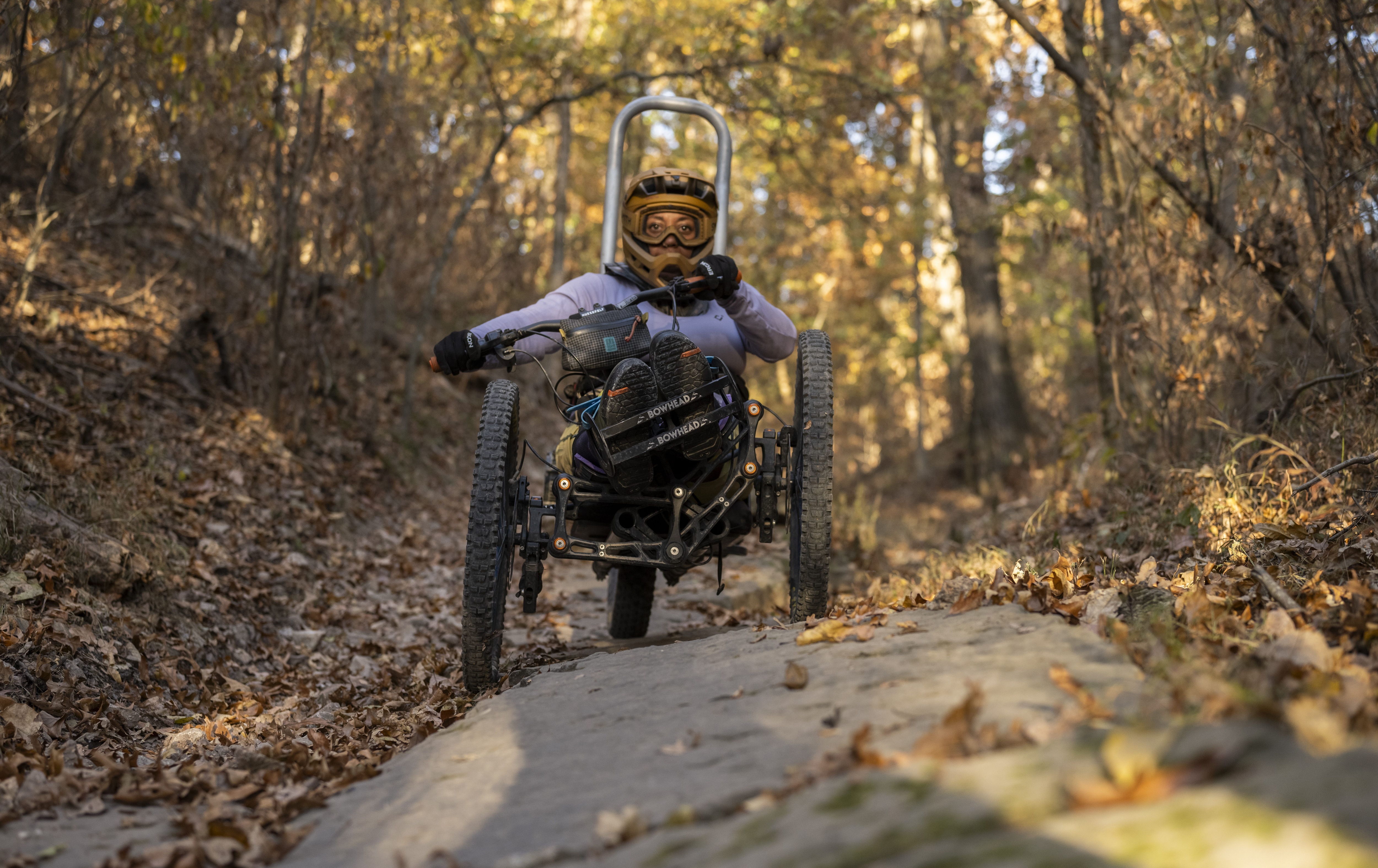 A few years ago, Annijke Wade’s career as a professional mountain biker changed dramatically after an accident that left her paralyzed from the chest down. Since then, she has become a talented para-cyclist, riding a three-wheeled mountain bike and propelling herself forward by rotating her handlebars. Even though her relationship with cycling has changed over the years, Annijke continues to love the thrill and freedom of whipping down trails and exploring the wilderness.