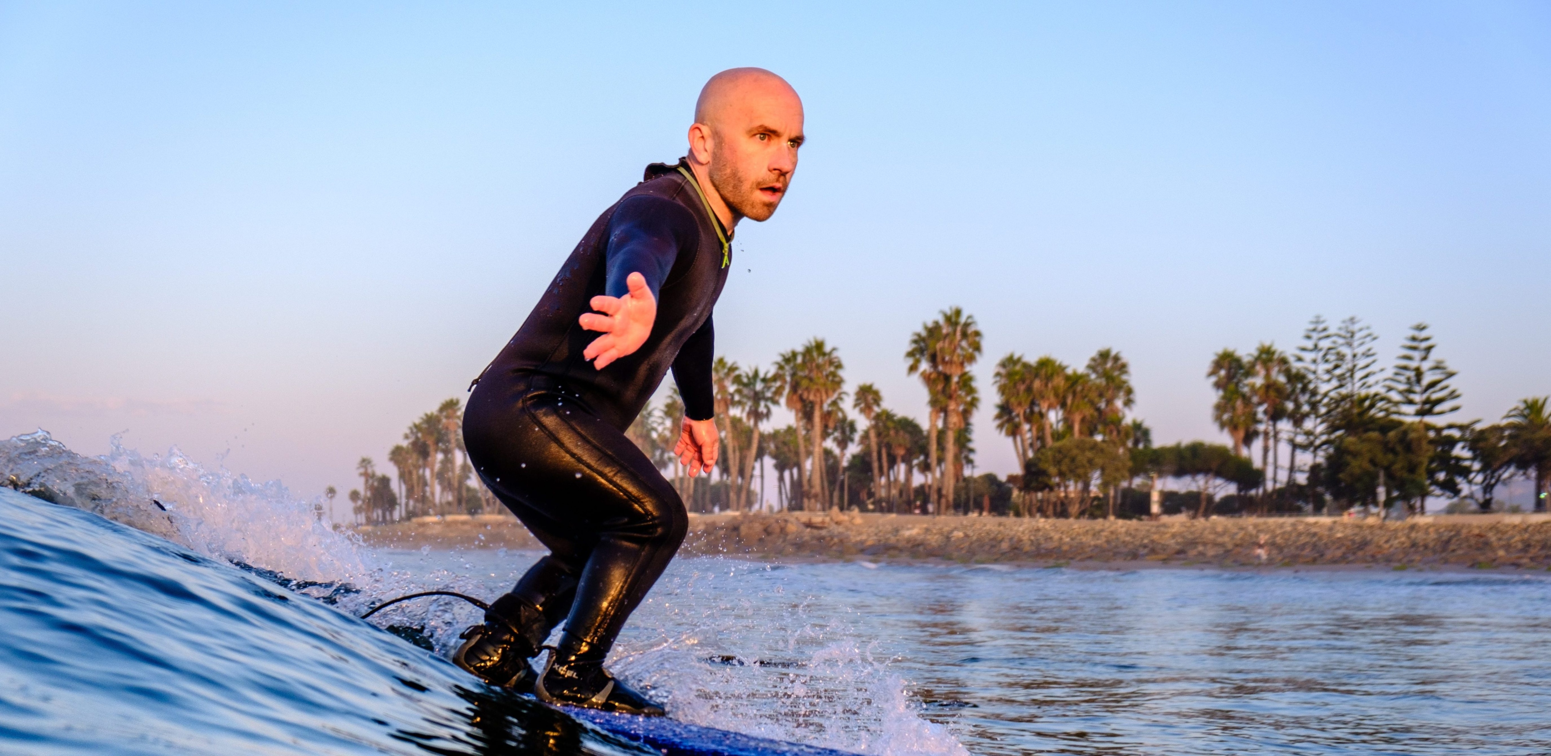 Christophe Zajac-Denek was just a couple of days old when he was diagnosed with a rare form of dwarfism called cartilage-hair hypoplasia. Doctors told his parents that he might never be able to ride a bike or go for a run. Today, Christophe stands at four feet, four inches tall. He can’t bend his back and the bones in his legs have been surgically altered. Despite his physical limitations, Christophe gets out on the water to surf anytime he can.