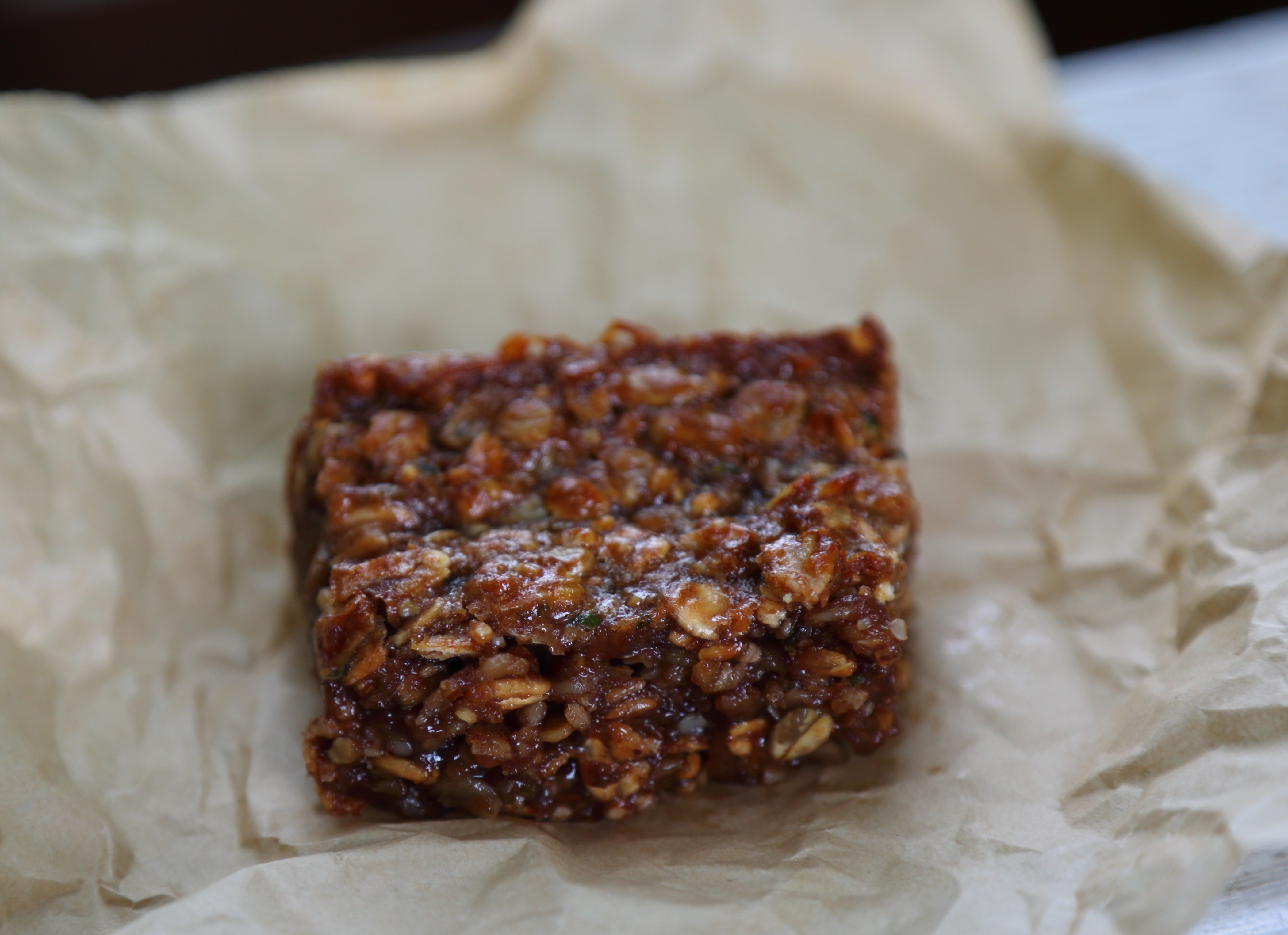 Remove from the oven and let cool before cutting into 16 evenly sized pieces. The bars will keep at room temperature for a couple of weeks, or they can be individually wrapped and stored in the freezer for up to two months.