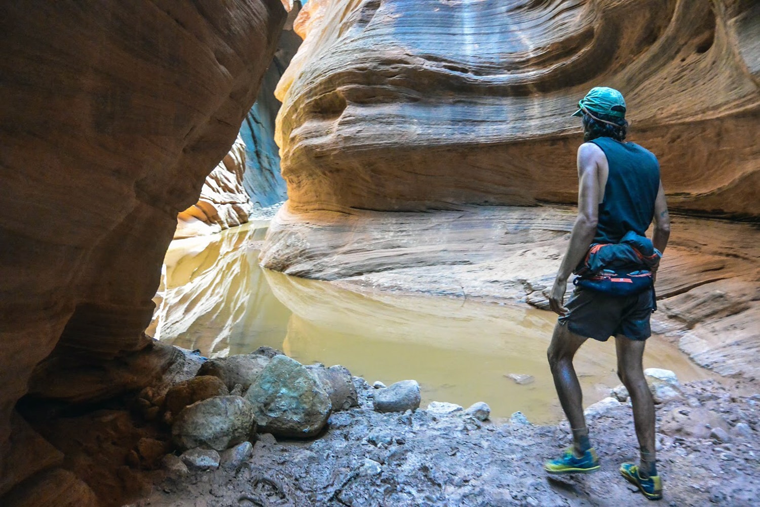 But how do you even get started running in the world’s hard-to-reach, below-the-surface canyons? And what do you need to know before you go? I’ve got some pointers for you taken from my experience exploring and writing guides to Southwest canyons. Late spring, early summer and fall are ideal times to hit the canyons to avoid the extremely dangerous flash-flood season that lasts roughly from late June to early September, according to climate scientists. On a perfectly sunny day a storm 50 miles away has the potential to fill a canyon with rushing water, scouring everything in its path. If there are storm clouds in the sky or rain in the forecast, push your run to another day.