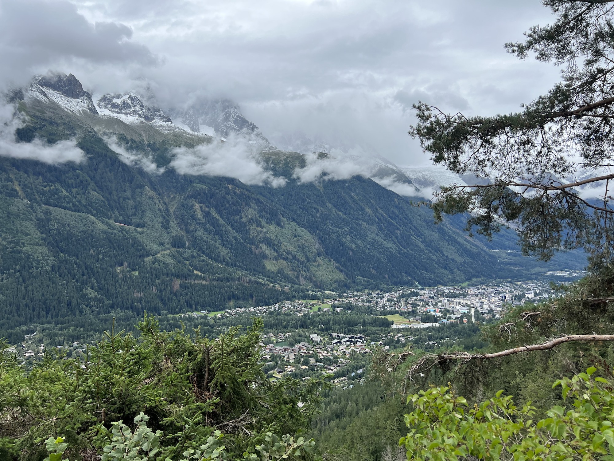 The view from a run on the Grand Balcon Nord Trail, which runs parallel but more than 3,000 feet above the town of Chamonix. This part of the trail is near one of the many refugios that dot the Alps. Like huts or cabins along trail systems in the U.S., refugios provide shelter and food to hikers, skiers and runners alike.