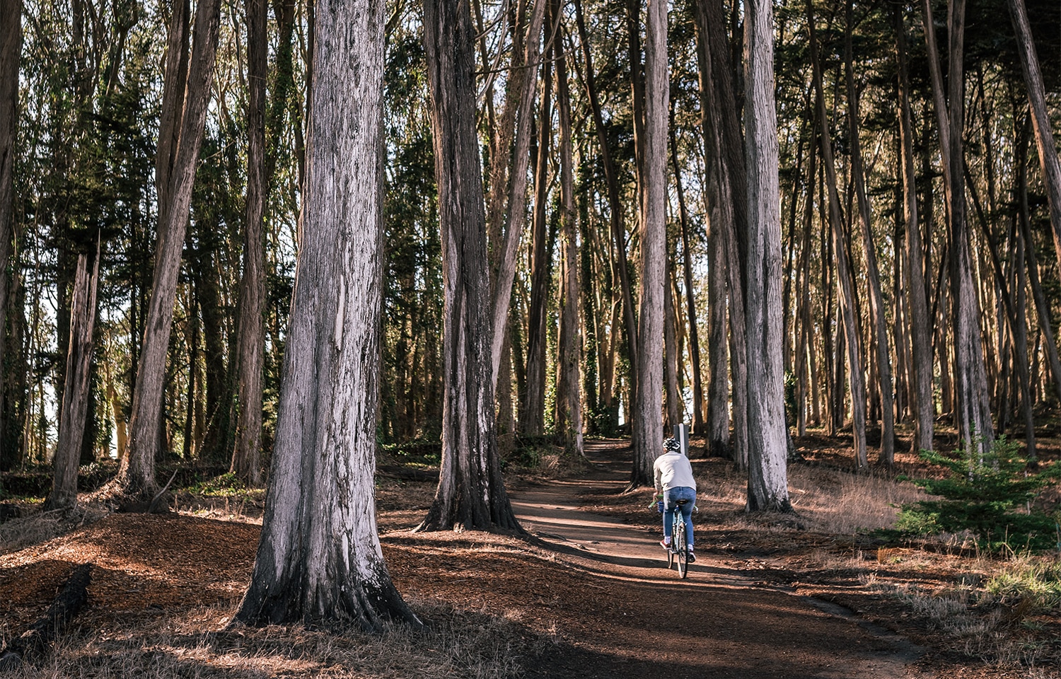 Emily Bauska, the staff’s volunteer and events manager, often rides her bike on the Bay Area Ridge Trail after work.