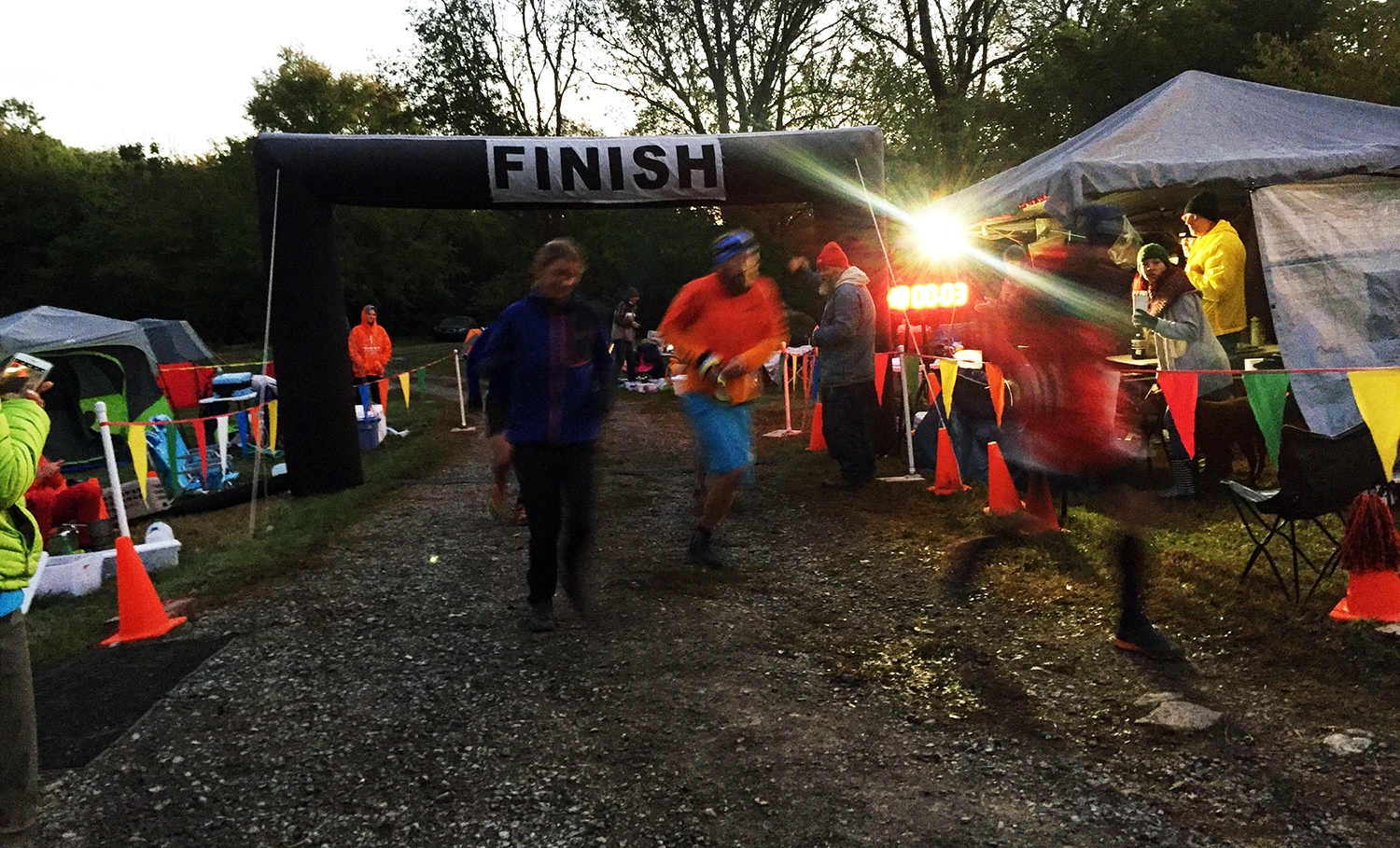 This year, Steene and 69 other runners started the race early on October 20, a Saturday morning. The rules are straightforward: Participants run a 4.166667-mile loop on a rocky trail every hour for as long as they humanly can. (At night, they switch to a more basic out-and-back road run.) If it takes them, say, 50 minutes to run the loop, then they have 10 minutes to rest before the next lap starts. Runners gradually dropped out throughout the first two days and by sunrise on Monday, 48 hours into the race, just five remained.