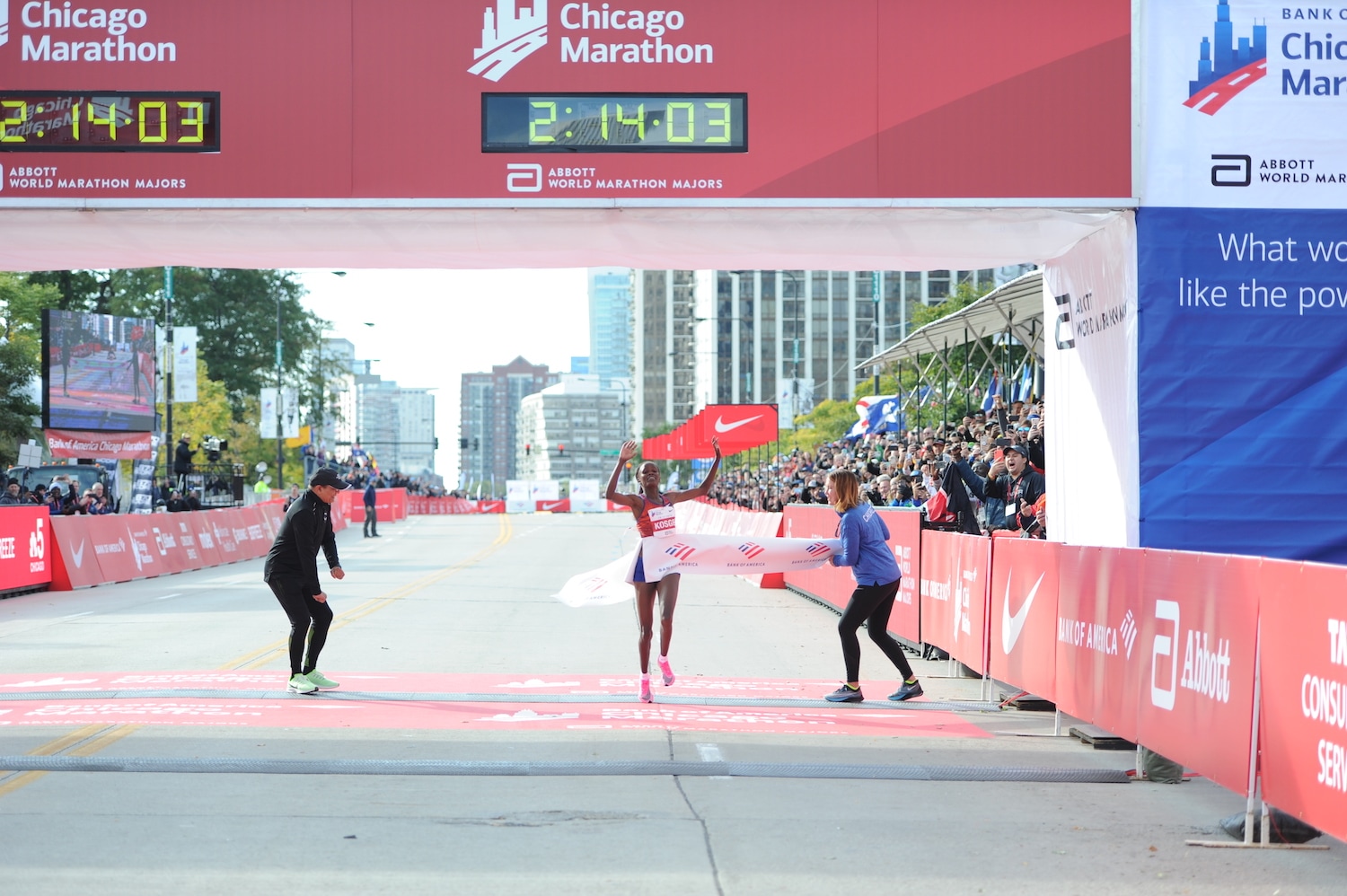 Brigid Kosgei shattered the women’s marathon record last weekend at the Chicago Marathon, beating a record that had stood for 16 years. (Photo Courtesy of Chicago Marathon)