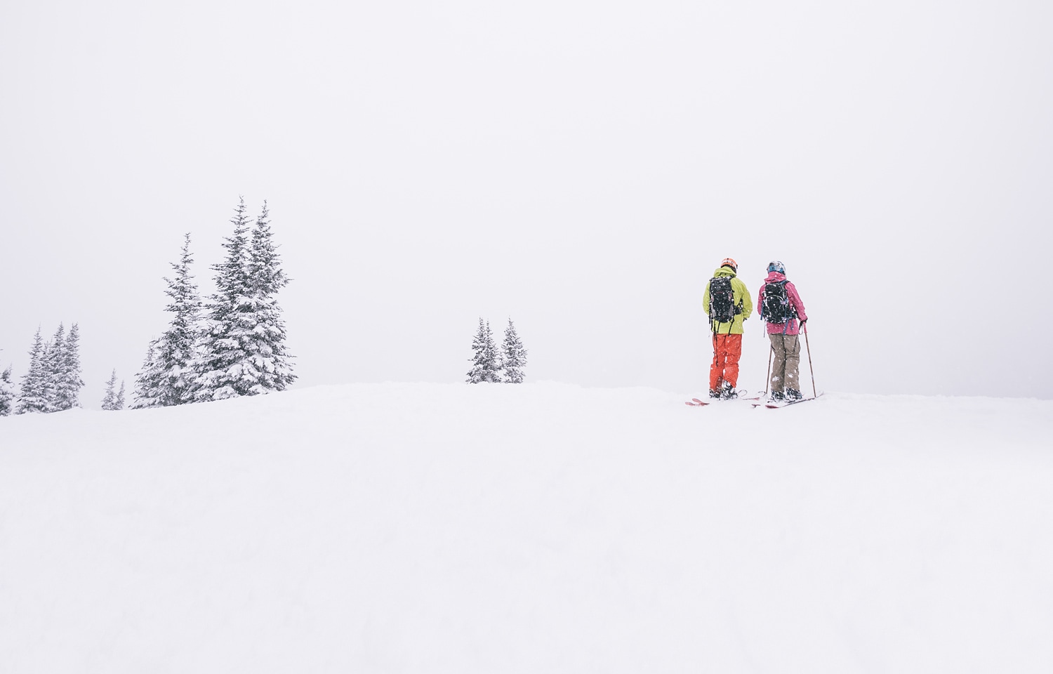 You definitely don’t want to hike up the hill with a puffy jacket on. You’ll get overheated in a flash. But you do want to keep that warmth on hand for the transition between climbing and skiing. Bring your puffy and pack it up top, where you can reach it easily.