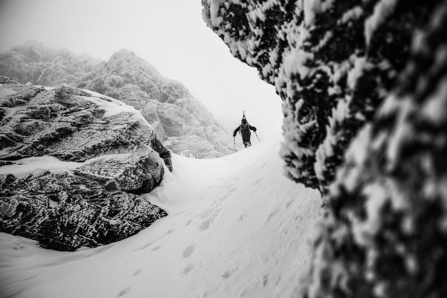 Three days of climbing and skiing yielded brilliant sights and sore legs, but perhaps most importantly, we found some incredible powder. Montana local Zack Gidley makes the most of a stormy afternoon in the park.