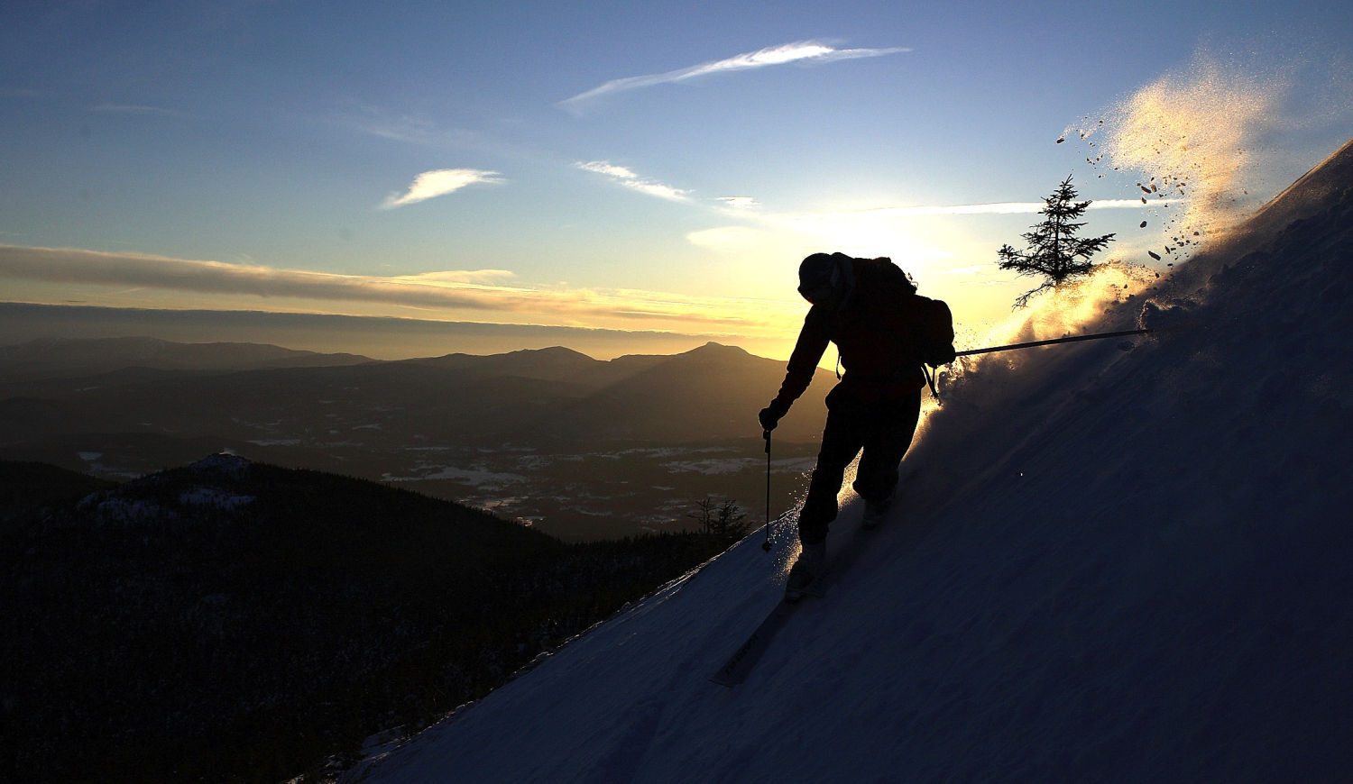 Sunset skiing to the backdrop of Vermont’s most iconic peak, Camel’s Hump.