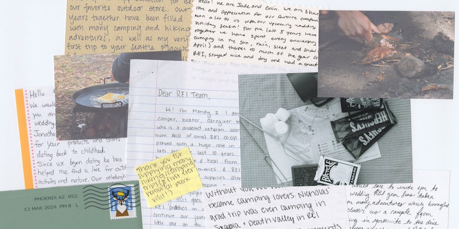 Over the years, REI Co-op Members and customers have sent in heartfelt handwritten notes (and emails, too) sharing how the co-op and wider REI community have touched their lives. You might be surprised to hear that quite a few letters arrive every month—they’re postmarked from all over the country, sent by all types of outdoor adventurers, from champion campers to budding backpackers and everything in between. REI admin Jessica Schmidt carefully reads, records and then arranges to store handwritten cards and letters in the Co-op Living Archive, a collection of historically and culturally significant pieces of co-op history. (The archive includes more than 35,000 digitized photos, 410 reels of film and thousands of documents, including European travel logs written by REI co-founders Lloyd and Mary Anderson in the 1960s, when they were sourcing gear for the store.)