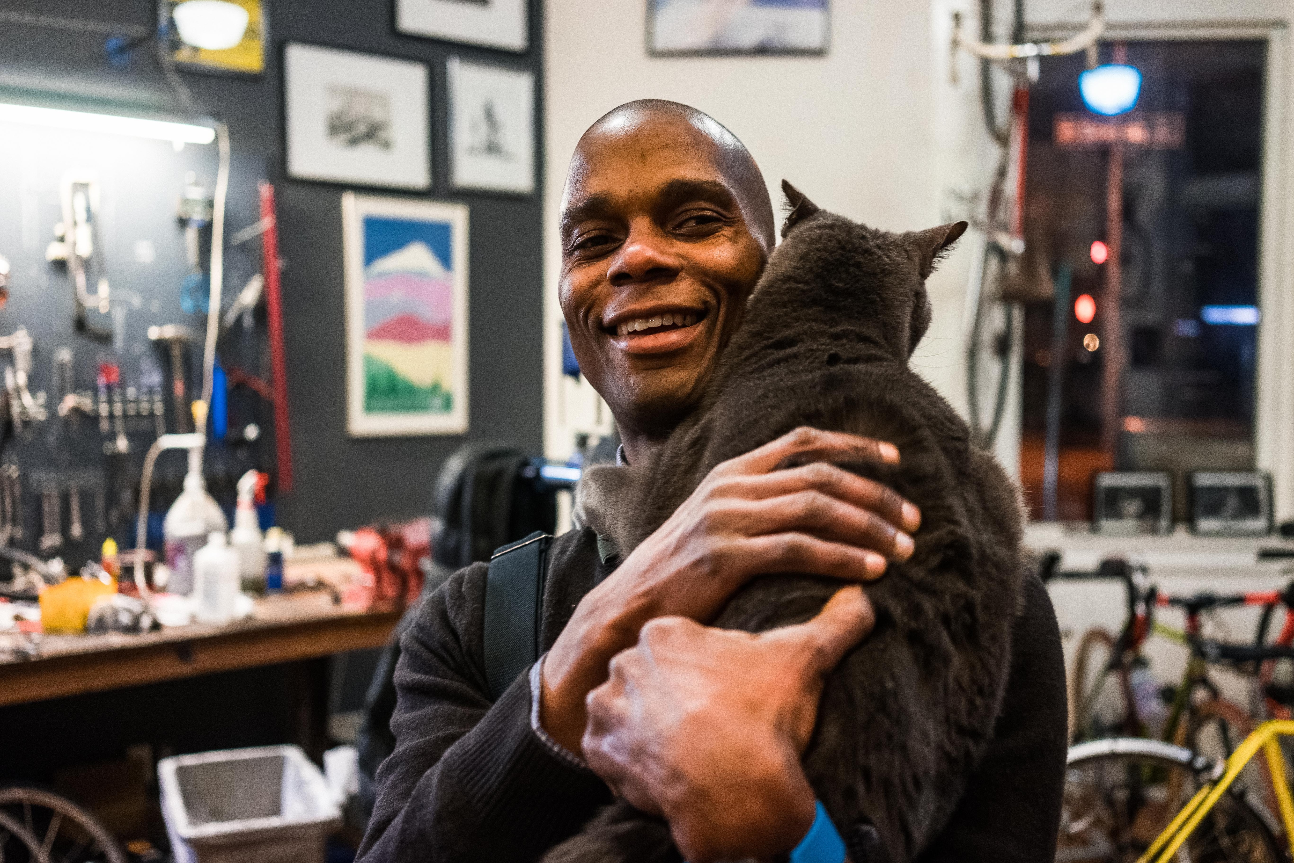 In this episode of Take It From Me, Mo, the adaptive climber you met in episode six, joins Gregory (and his cats) in his bike shop. They talk about how he ended up choosing Five Points as the location for his shop and what it took to open a successful business after making a career change.